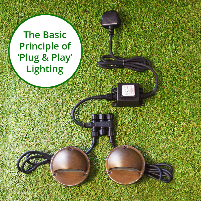Fostering offer a range of 240v – 12v transformers and various connector cables which are suitable for 12v plug and play garden lighting systems. The waterproof, 2 pin connectors (male) make installation even easier with no need to physically wire the lights.