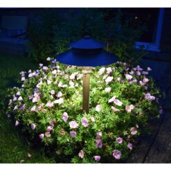 This traditional brass 12v plug & play garden Spreadlight has an elegant rustic bronze finish and is ideal for lighting edging, pathways and flower beds in the garden. The fitting emits the ‘spread’ downwards in a light pool with no ‘upwards’ light pollution. The wide-angle of the large shade disperses this spread of light over approx. 100º. The underside of the shade has a white powder coated finish. This greatly enhances and reflects the light downwards and outwards.