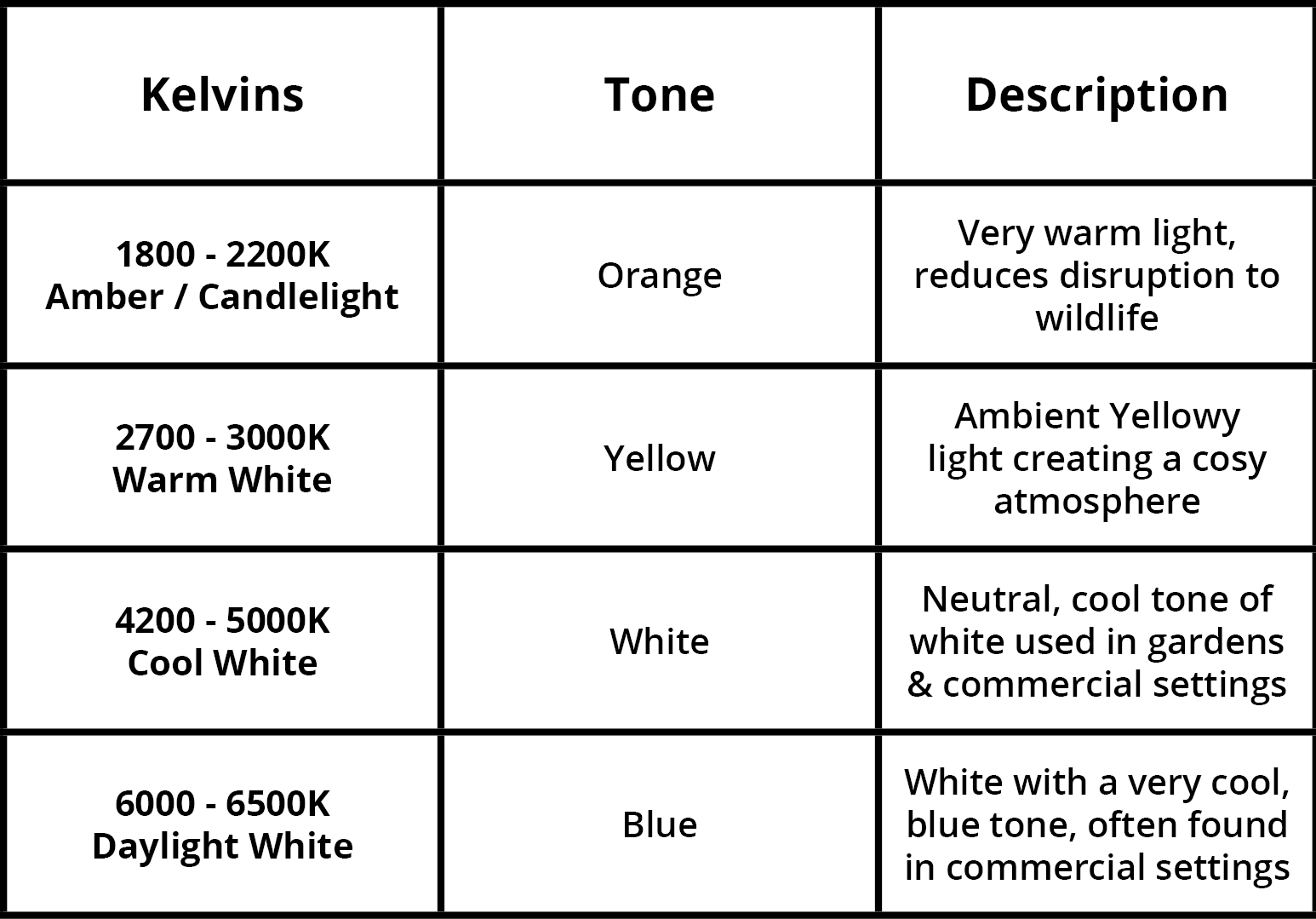Warmer colour temperatures have a less disruptive impact on wildlife and help reduce star-warping. For instance, bats are less affected by red-toned lights, which produce orange or yellow hues, compared to cooler, daylight white or blue lights higher in the spectrum. Blue light, being the most harmful for light pollution, should be minimised. The best solution is to use colour temperatures of 3000K or lower, with 2700K often referred to as “bat-friendly” lighting.