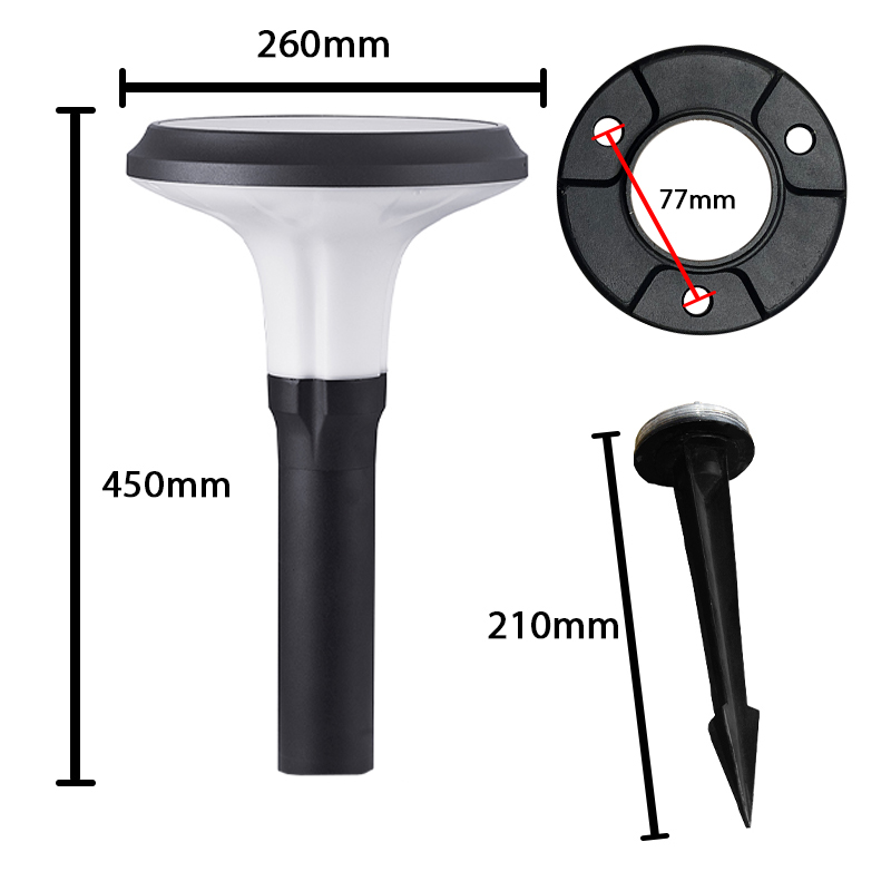 Both the post and top of the head are sturdy die-cast aluminium, with a diffuser built from durable UV-stop polycarbonate. Included as standard is a 210mm ground spike and external mounting base.