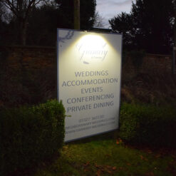 There are 3 mounting positions on the 180mm L shaped mounting arms in 27mm increments (centre to centre). As a result, the projection of light is adjustable; either a snug fit to the surface for a more focused beam, or further away for a more broad beam. One Signa will illuminate a sign up to 1.2m width. Mounted 500-550mm apart, the Signa creates a continuous pool of light across the surface. This is ideal for covering larger signs and walls with the perfect cross section.